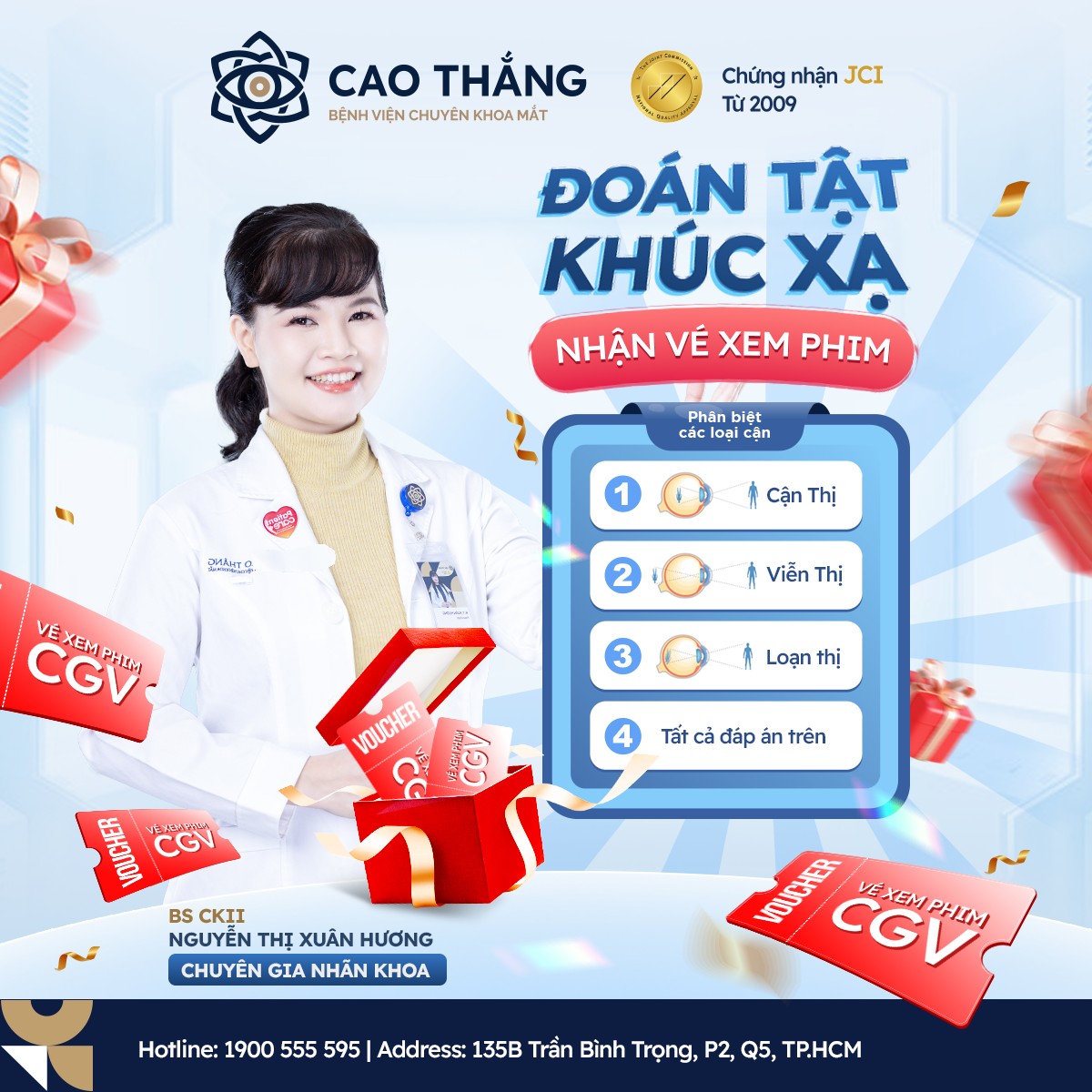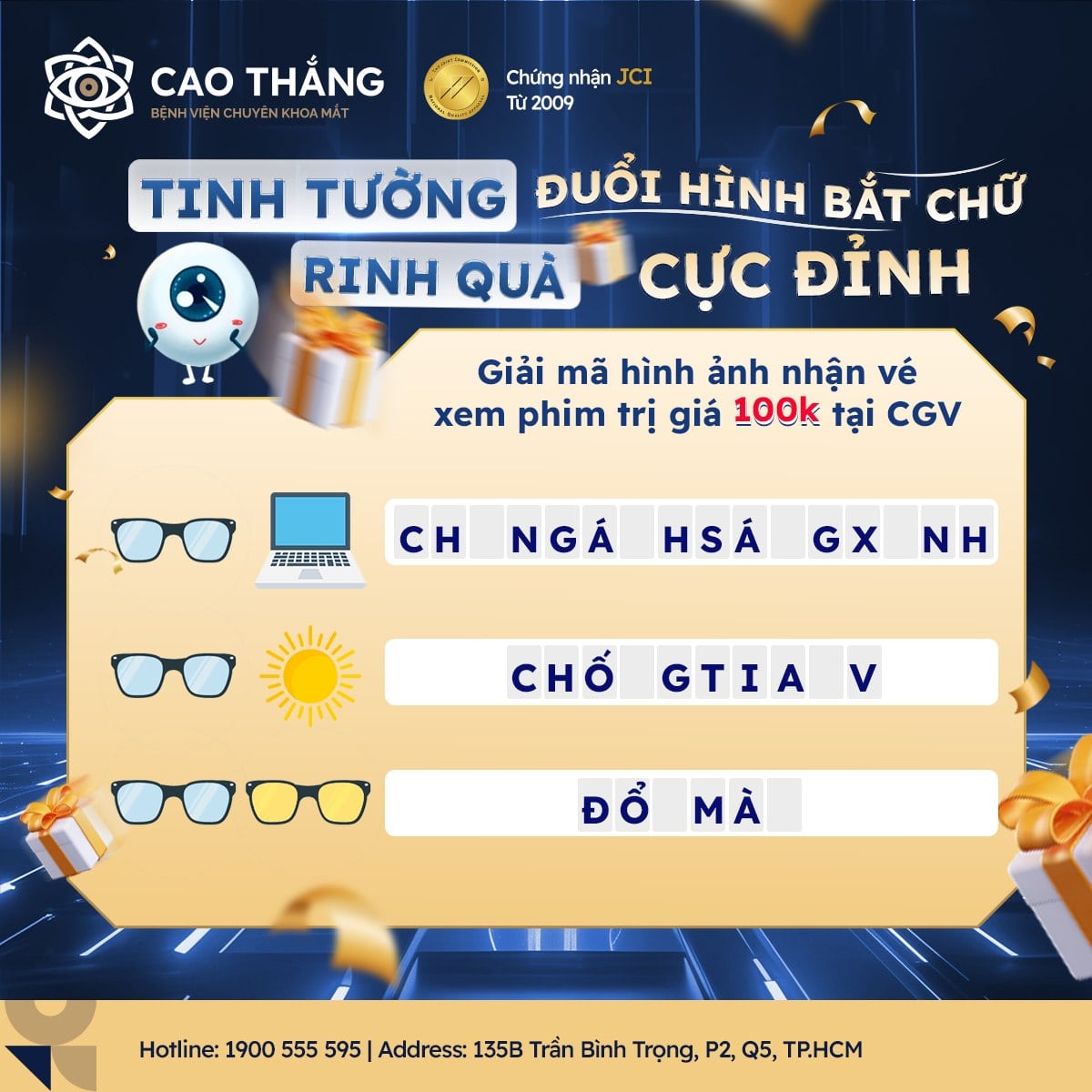 [MINIGAME] MẮT SÁNG TINH ANH – NHANH TAY RINH VÉ XEM PHIM CGV CÙNG BỆNH VIỆN CHUYÊN KHOA MẮT CAO THẮNG 🎁
